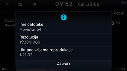 Ova značajka prikazuje naziv, razlučivost i podatke o vremenu reprodukcije datoteke.