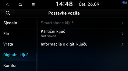 Možete registrirati ili izbrisati digitalne ključeve ili promijeniti postavke digitalnog ključa.
