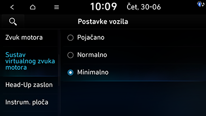 2. Odaberite željene stavke. Način oglašavanja zvuka motora možete postaviti na Pojačano, Normalno, Minimalno ili Isključeno.