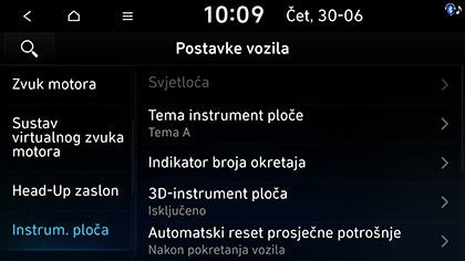 • Odabir sadržaja: Postavlja sadržaj koji će se prikazati na digitalnoj instrumentnoj ploči.