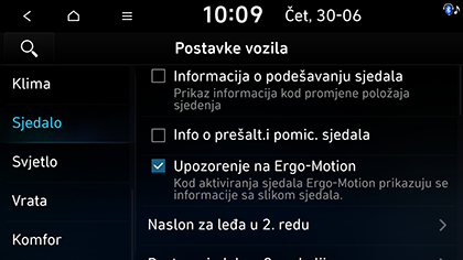 • Upozorenje na Ergo-Motion: Kada se aktivira ergo-pokret sjedalo, informacije o radu prikazuju se sa slikom sjedala.