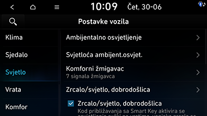 • Prilagodi osvjetljenje brzini: Svjetlina ambijentalnog osvjetljenja prilagođava se na temelju brzine vozila.