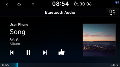 ] > Zdroje médií > Bluetooth Audio nebo přepínejte tlačítkem MODE na volantu. -