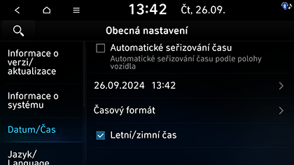 Automatické seřizování času je k dispozici pouze v případě, že je podporována navigace.