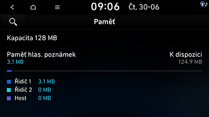 Můžete zkontrolovat místo v paměti pro hlasovou poznámku (celkový prostor úložiště, využitý prostor paměti, zbývající paměť).