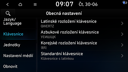 Standardní klávesnice: Zvolí Latinské rozložení klávesnice, Azbukové rozložení klávesnice, Řecká klávesnice nebo Korejské rozložení klávesnice.