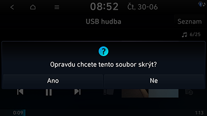 Aktuálně přehrávaný soubor na USB můžete skrýt.