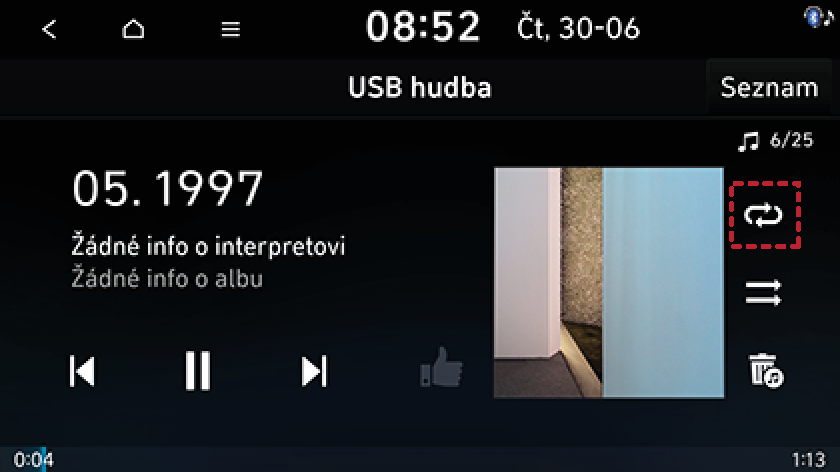 Aktuálně přehrávaný soubor je přehráván opakovaně.