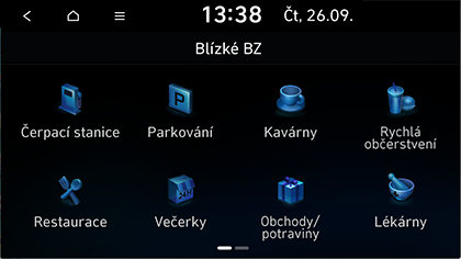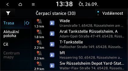 Stiskněte NAV > Blízké BZ > Čerp. stanice.
