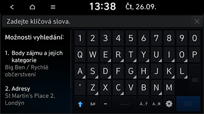 Zadejte klíčová slova, jako je bod zájmu, kategorie bodu zájmu, adresa, souřadnice a stiskněte OK.