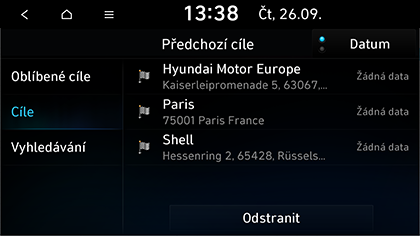Stiskněte Odstranit pro odstranění předchozích cílů. Zvolte požadovanou položku a poté stiskněte Odstranit.