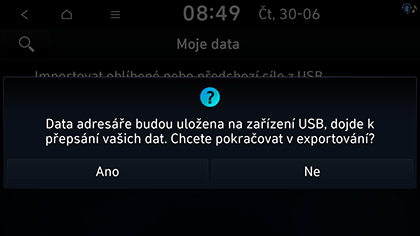 Stiskněte SETUP > Navigace > Automatické funkce> Moje data > Importovat oblíbené nebo předchozí cíle z USB.