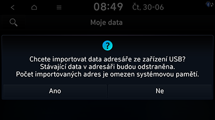 Tato funkce slouží k importu adresáře z paměťového zařízení USB.