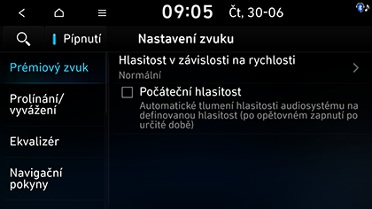 Hlasitost v závislosti na rychlosti: Automaticky upravuje hlasitost zvuku podle rychlosti vozidla.
