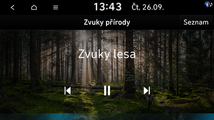 ] > Zdroje médií > Zvuky přírody nebo přepínejte tlačítkem MODE na volantu. -