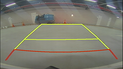 Zadní kamera má širokoúhlé čočky, aby poskytla široký náhled. Z toho důvodu jsou vzdálenosti na kameře odlišné od těch skutečných. Pro své bezpečí se vždy při couvání dívejte i do prostředního, levého a pravého zpětného zrcátka.