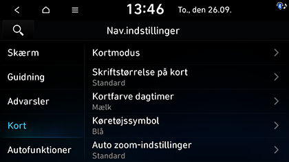 Afstandsenhed: Indstiller afstandsenheden på navigationskortet.