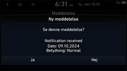 Når den nye notifikation er modtaget, vises pop op-notifikationen. Tryk på Ja eller Nej.