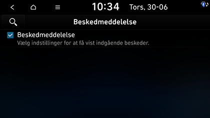 Tryk på SETUP > Enheds- tilslutning > Beskedmeddelelse. Kontroller for at se meddelelsespop-ups for modtagne meddelelser.