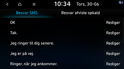 Du kan vælge den ønskede meddelelse i Besvar SMS eller Besvar afviste opkald.