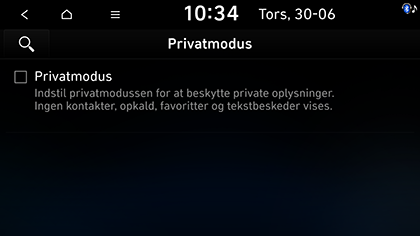 Du kan indstille privatlivstilstanden for at beskytte dine personlige data. Kontakter, opkaldshistorikken, favoritter og beskeder vises ikke når privatlivstilstanden er aktivert.