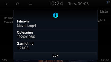 Denne funktion viser filens navn, opløsning og spilletid.