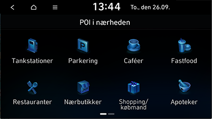 Destination: Søger efter interessepunkter i nærheden af den nuværende destination. Er kun tilgængelig, når destinationen er indstillet.