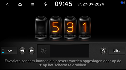 Druk op DAB/FM of FM om de band te wijzigen naar AM-radio, als de radioband is ingesteld op DAB(indien aanwezig)/FM. De laatste zender waarnaar u hebt geluisterd, wordt weergegeven.