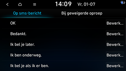 U kunt het gewenste bericht selecteren in Op sms-bericht of Bij geweigerde oproep.