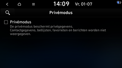 U kunt de privacymodus instellen om uw persoonsgegevens te beschermen. Contacten, belhistoriek, favorieten en berichten worden niet weergegeven als de privacymodus geactiveerd is.