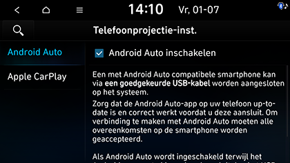 In dit menu kunnen Android Auto en Apple CarPlay ingeschakeld worden door een vakje aan te vinken.