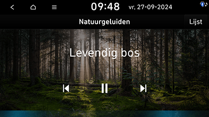 ] > Mediabronnen > Natuurgeluiden of schakelt u over naar de MODE-knop op het stuurwiel. -