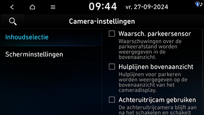 Inhoudselectie: Stelt de optie zicht parkeergids in.