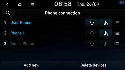Displays the paired Bluetooth device list. When selecting from the list, the device is either connected or disconnected.