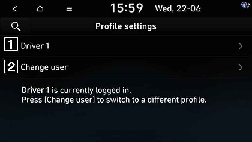 Delete profile Driver1, Driver2, Guest: Deletes the current driver profile.