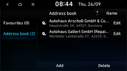 You can select destination from a location saved in the Address book menu. To utilize this function more effectively, destinations that you often travel to should be saved in advance.