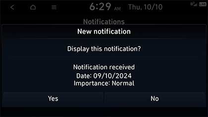 Kui teile saadetakse uus teavitus, ilmub uue teavituse hüpikaken. Vajutage kas Yes või No.