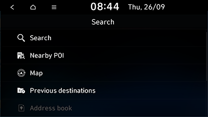 Saate valida sihtkoha menüüsse Address book salvestatud sihtkohtade seast. Sellest funktsioonist on kõige rohkem kasu siis, kui kõige sagedamini külastatavad sihtkohad on juba varem salvestatud.