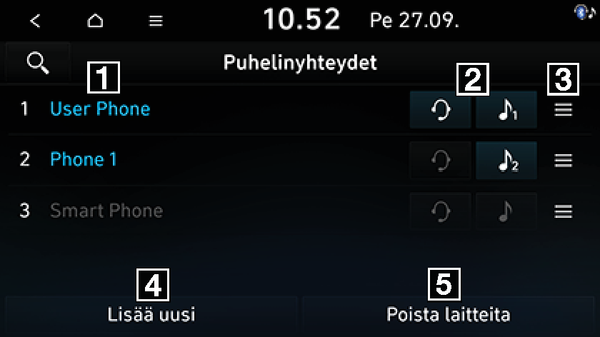 Tämän valikon avulla pääyksikön ja Bluetooth-puhelimen voi yhdistää laitepariksi.