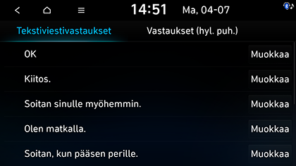 Voit valita halutun viestin seuraavista: Tekstiviestivastaukset tai Vastaukset (hyl. puh.).