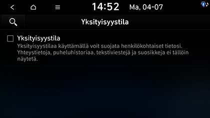 Paina SETUP > Laiteyhteys > Yksityisyystila.