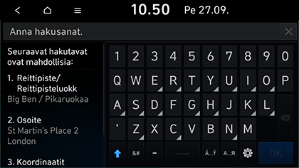 Syötä avainsana, kuten POI, POI-kategoria, osoite, koordinaatit ja paina OK.