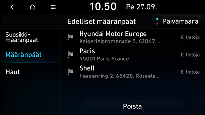 Paina Poista poistaaksesi aikaisemmat kohteet. Valitse haluttu kohde, paina sitten Poista.