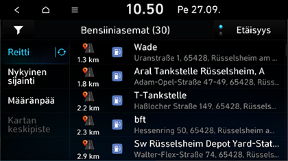 Määränpää: etsii tankkausasemia valitun määränpään läheltä.
