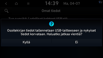 Tätä toimintoa käytetään osoitekirjan siirtämisessä USB-muistilaitteelle.