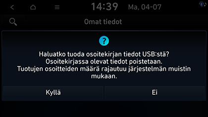 Tätä toimintoa käytetään osoitekirjan tuomiseen USB-muistilaitteesta.