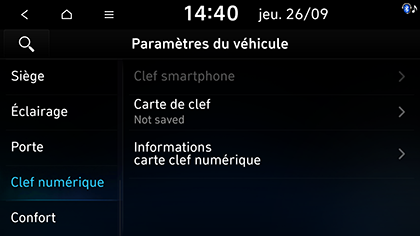 Appuyez sur SETUP > Véhicule > Clef numérique.