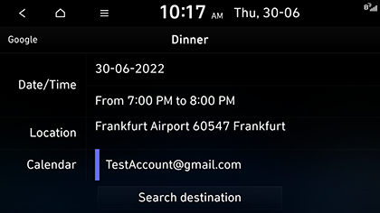 A través da aplicación Bluelink para smartphone, lígase co calendario (Google, iCloud) que o cliente emprega primeiro.