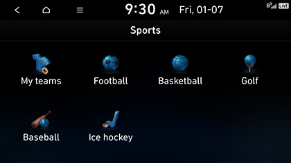 Sports: amosa os resultados dos partidos e outra información sobre cada deporte.