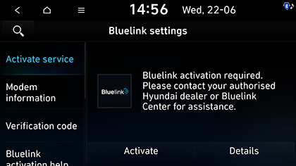 Activate service: este menú emprégase para activar o servizo Bluelink.